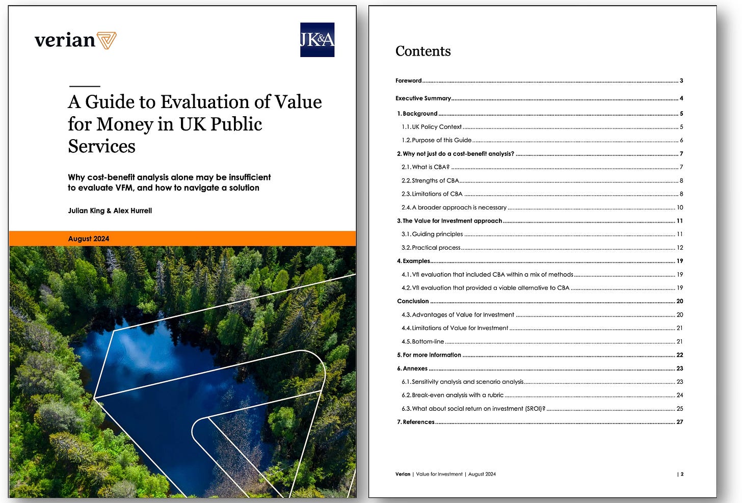King, J. & Hurrell, A. (2024). A Guide to Evaluation of Value for Money in UK Public Services: Why cost-benefit analysis alone may be insufficient to evaluate VFM, and how to navigate a solution. Verian Group.