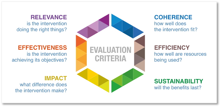 The DAC Criteria overlap conceptually with the 5Es in obvious and non-obvious ways. They have two criteria in common (efficiency and effectiveness) though the two frameworks define them a bit differently. As I unpacked in an earlier article, the definitions of the DAC Criteria overlap conceptually with the 5Es in multiple ways.